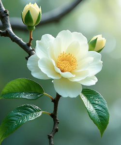 山茶花山茶花冬春绽放,花朵饱满且色彩淡雅,寓意孤傲与自立,不与百花争艳,展现低调的优雅。