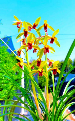 建兰(四季兰)建兰耐寒性略强于墨兰,可耐受0℃低温,但低于零度需保暖。其特点是养护得当可四季开花。