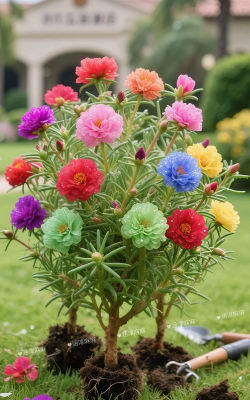 大花马齿苋是比较常见的太阳花,所以也是最普通的太阳花,每年会在6~9月时开出美丽的花朵,开出来的花朵形态是倒卵形的,茎高12~15厘米,匍匐地面,分枝多,稍带紫色或绿色,光滑。