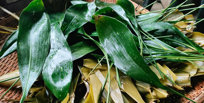 在南方地区,包粽子大部分用的都是箬竹叶,箬竹叶宽大,但是又很柔软,很适合拿来包粽子。箬竹叶包出来的粽子,带有竹叶的淡淡清香,而且新鲜的箬竹叶颜色翠绿,包粽子超级漂亮。如果是老箬竹叶,尽量在锅里煮一下后再用。