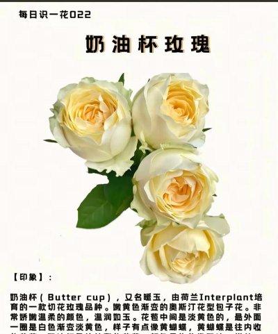 奶油玫瑰(或奶油杯玫瑰)是一种以柔和奶油色或浅黄色渐变花瓣为特色的玫瑰品种,其花语和寓意主要围绕温暖、浪漫、坚韧等情感展开。以下是综合多个搜索结果后的详细解读: