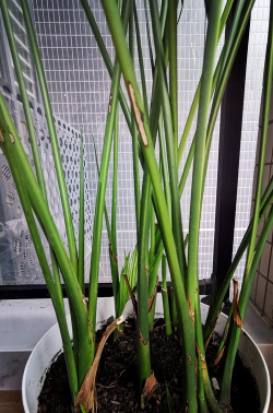 原因:长期缺光会导致叶片发黄干枯,而强光直射则可能灼伤叶尖。
