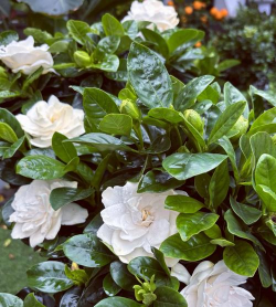 3、光照:栀子花喜充足的光照,特别在春秋两季,每日要给多于8小时的日照,不然对其生长发育和冬季越冬不利。夏季忌中午强光曝晒,否则会使叶片变黄,要放置散光处养护,透光率达40-50%为宜。入冬放置室内朝南阳光直射处。