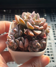 多肉紫卡又叫艾晓斯。它是景天科、拟石莲花属多肉植物,容易分枝,群生,多头。紫卡叶片较小,株型也整体偏小,叶片成小匙状,比较厚,叶片背面是圆弧状的。表面常常披着白色的粉末状物质,通常条件下叶片为灰蓝色或有的泛着微微的橙光,生长环境温差较大的话,紫红色逐渐加深。