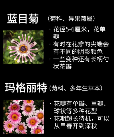 特点:色彩多样(紫、粉、白),全年开花,株型紧凑适合盆栽。