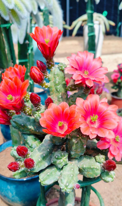 最经典的嫁接选择,同属仙人掌科,亲和力高。嫁接后生长迅速,开花量大,花色丰富,适合新手操作。