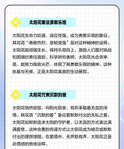 太阳花象征着希望,乐观与勇敢,自强不息,欣欣向荣。太阳花的花语一般都是比较具有积极意义,花语为沉默的爱,它也代表着热情和阳光,因为它比较喜欢在阳光充裕的环境中生长,并且它生长顽强,因此也代表着顽强不息。