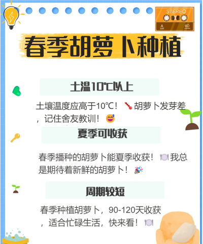 1、选择品种:选择抗病性和丰产性强、耐高温和低温的胡萝卜品种。