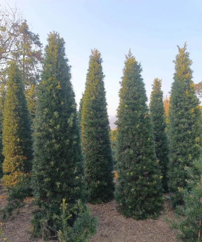 推荐树种:罗汉松(抗病虫害强,可修剪至20米)、红豆杉(常绿,耐寒)、侧柏(耐修剪,适应性强)、圆柏(耐旱耐寒)。
