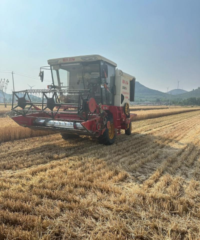收割机一天收多少亩地需要根据地块耕种的作物和地形来决定,一般情况下,一台收割机一个小时能收割10亩地,一天按10个小时工作量计算,一天能收割100亩地,而在比较崎岖的地形,收割机一天只能收割70-80亩地。当然还要看田块大小、田块硬度、水稻倒伏程度、机手熟练程度等。