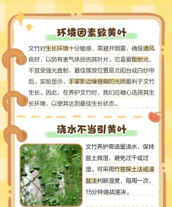 文竹黄叶需根据具体原因对症处理。调整光照、合理浇水、科学施肥、保持适宜温湿度是关键。若黄叶严重,可修剪后重新养护,促进植株恢复。