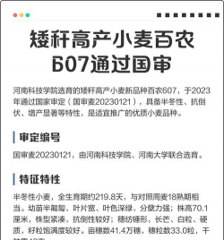 百农607小麦是由河南百农种业有限公司育种的小麦品种,该小麦是2018年审定的半冬性小麦品种。该小麦种适合在河南省南部长江中下游麦区除外的早中茬地种植。它适宜播种时间10月上旬,播种密度16-24万。