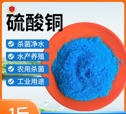 3、硫酸铜在水产养殖中常用的药物之一,它具有防治鱼病、杀菌消毒、控制有害藻生长的作用,但是如果使用不当也会对鱼类造成伤害,比如当使用了过量的硫酸铜时,就会导致鱼类中毒,因此在使用的时候应该严格控制用量。
