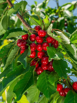 樱桃树是落叶小乔木,高度为2-6米,树皮颜色呈灰白色,小枝为灰褐色,嫩枝颜色呈现绿色,樱桃树的叶片呈现卵形或者长圆状卵形,长度为5-12厘米,宽度为3-5厘米。樱桃树的花期在每年的3-4月份,花序近似伞状,颜色呈现白色,在每年的5-6月份结果,樱桃树果实为红色。