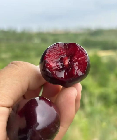 胜利是1997年从乌克兰引进的甜樱桃品种。山东省果树研究所早熟大果甜樱桃品种,岱红是山东农业大学选育。均单果重10.85克,大果可达14.2克。果实为圆心脏形,果型端正,畸形果很少。果柄短,均果柄长2.24厘米。果皮鲜红至紫红色,富光泽,色泽艳丽,果肉粉红色,近核处紫红色,果肉半硬,味甜适口。