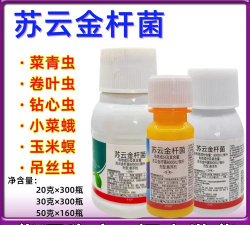 2、每亩地使用100-150g的苏云金杆菌可湿性粉剂兑水50kg喷雾,防治菜青虫、小菜蛾、甜菜夜蛾、烟草、烟青虫。