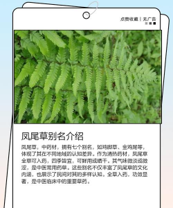 凤尾草的别名有鸡脚草、金鸡尾、井口边草、井边凤尾、井栏草、凤尾蕨、五指草等等。凤尾草是凤尾蕨科凤尾蕨属植物,喜生长在荫蔽、湿润、温暖处。也耐旱,在南方冬季,石缝中生长的植株经—二月干旱,仍不致完全枯死。主产长江流域及以南各省、区,北方的陕西、河北、山东等省也有分布。