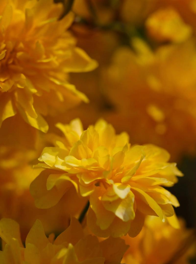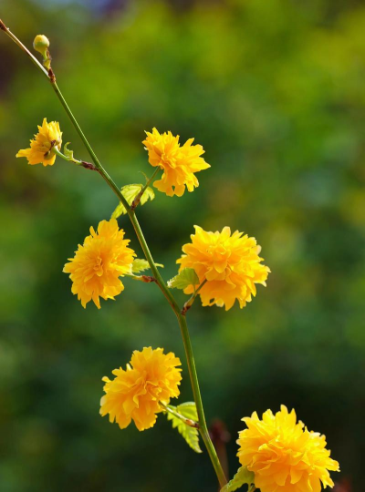 棣棠花最典型的颜色是金黄色,象征尊贵,常被用于园林绿化或庭院观赏。其花瓣宽椭圆形,呈鲜亮金黄色,花型小巧可爱。