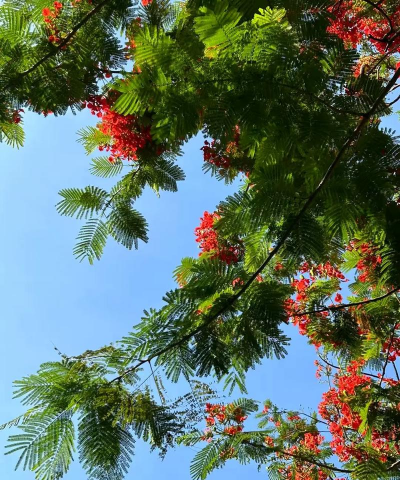 金凤花(凤凰木):汕头的市花,花期6-8月,火红色花朵如云霞,象征热情与希望,汕大校园、海湾湿地公园是热门打卡地。