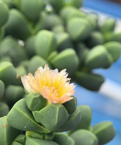 特征:鹿角海棠(学名:Astridia velutina)是番杏科多肉植物,原产南非,叶片对生呈三棱形,形似鹿角,夏季开花,花色多为黄色或粉色。