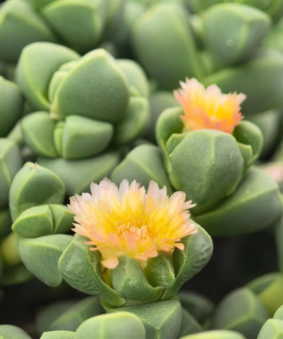 特征:多肉植物中的鹿角家族(如Conophytum quaesitum),叶片双裂如鹿角,夜间开花,有香味,属于番杏科。