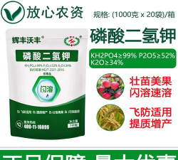4、磷酸二氢钾属全水溶肥料,遇水即溶,贮存需放在阴凉干燥处。