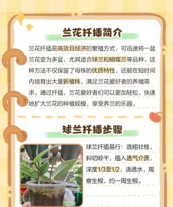 兰花的扦插繁殖是一种经济高效的繁殖方式,具体方法多样,需根据品种和环境选择合适的技术。以下是综合各来源信息的扦插方法及关键要点:
