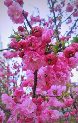 榆叶梅:耐碱,春季开粉红色花朵,常用于庭院美化。