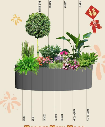 可根据摆放环境调整尺寸,例如驼峰花箱(2470×360×720 mm)、马槽花箱(长条规格3000×280×342 mm)等。