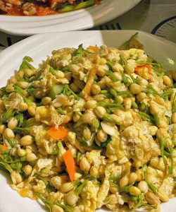 做法:嫩花茎与鸡蛋同炒,保留微苦风味。