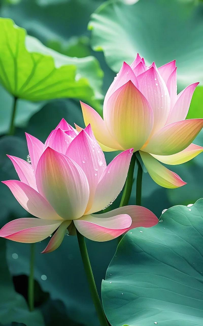 并蒂莲:一茎双花,天然生成,象征吉祥,罕见珍贵。