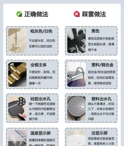 选购建议 :优先根据安装条件选择类型(如预埋深度决定固定/挂墙),注重材质耐用性(铜/不锈钢优于ABS),并测试出水模式是否满足需求。