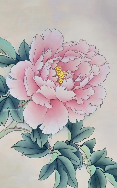 牡丹为“花中之王”,花形饱满,花色艳丽(如墨红、粉红、黄等),工笔画中注重花瓣的层叠与花蕊的精细刻画。