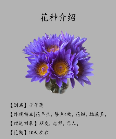 爱情守护:赠送19朵睡莲,寓意“守护一生”,适合恋人表达长久承诺。