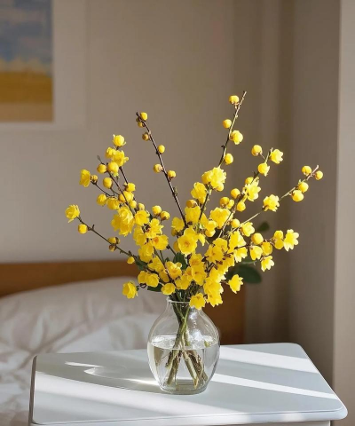 冬末先叶开花,花单生于一年生枝条叶腋,有短柄及杯状花托,花被多片呈螺旋状排列,黄色,带腊质,花期12-1月,有浓芳香。瘦果多数,6-7月成熟。