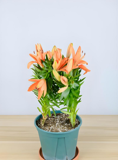 百合花喜欢生长在温暖、湿润的环境中。百合属长日照植物,光照不足会引起花蕾脱落,开花数减少,花期推迟。光照充足,植株健壮矮小,花朵鲜艳,可以促进提前开花。喜微酸性的砂质壤土,栽植土层要求疏松、透气、透水。如果土壤过于潮湿、积水或排水不畅,都会使百合鳞茎腐烂死亡。花期供水要充足,花后应减少水分,地上部分枯萎后要停止浇水。