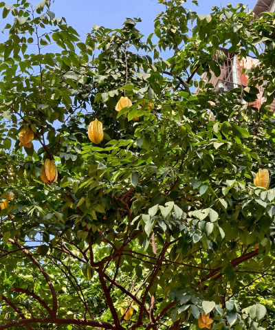 杨桃原产于马来西亚、印度尼西亚,广泛种植于热带各地。中国广东、广西、福建、台湾、云南有栽培。杨桃果实奇特,色泽美观,园林中常用于路边、墙垣边或建筑旁栽培观赏,也可大型盆栽绿化阳台、天台。