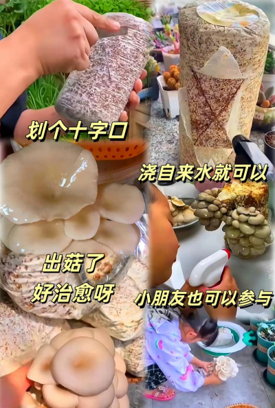 在蘑菇出菇前不要喷水。大约七天左右,菌包上会出现小菇蕾。