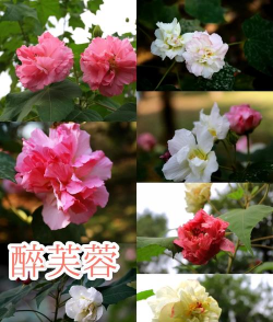 芙蓉花别名拒霜花、木莲、杹木、三变花、九头花、转观花、清凉膏等。木芙蓉的枝、干、芽、叶在各个季节会形成不同的景色,春季梢头嫩绿,生机盎然;夏季绿叶成荫,浓荫覆地;秋季花团锦簇,形色兼备;冬季扶疏枝干,孕育生机。芙蓉花会因光照强度的差异导致花瓣中青素浓度不同,使花瓣呈现出不同的颜色,早晨为白色和浅红色,中午和下午变为深红色,从而使木芙蓉又有“三醉芙蓉”的称呼。