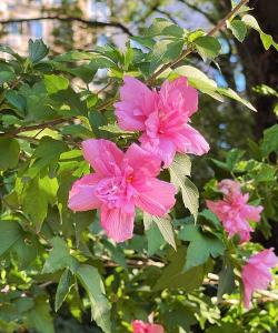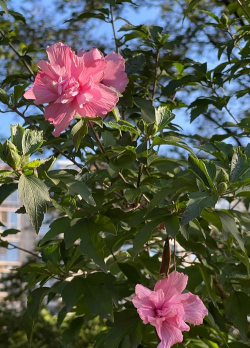 木槿:花期7-10月,花朵单生,颜色多样(白、粉、淡紫),适应性强。