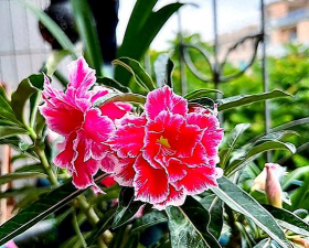 沙漠玫瑰:原产沙漠地区,1-2个月不浇水无碍,花色艳丽。