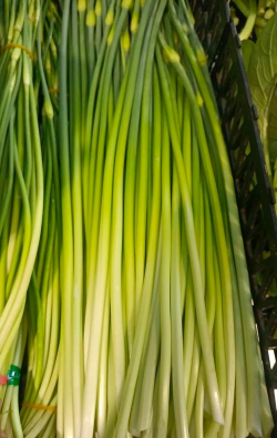 蒜苔采收适期为苔尾变白、上部弯曲时(抽薹后18-20天),宜午后采收以减少断薹。方法包括“切取法”(基部15厘米处切断)或“剥取法”(剖开叶鞘取苔),后者可提早上市。