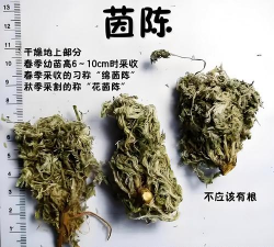 春季采收的“绵茵陈”叶片卷曲成团,无花;秋季采收的“花茵陈”则保留花朵。