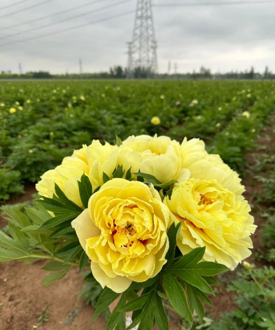 黄堽镇芍药 :描述中提到“奶油碗”花茎,推测可能为黄色品种,但未明确说明。