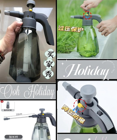 园艺专用喷壶:如搜索结果中推荐的2L大容量气压壶,耐高压、可调喷雾模式,且人体工学设计操作轻松。