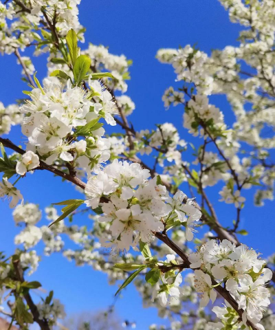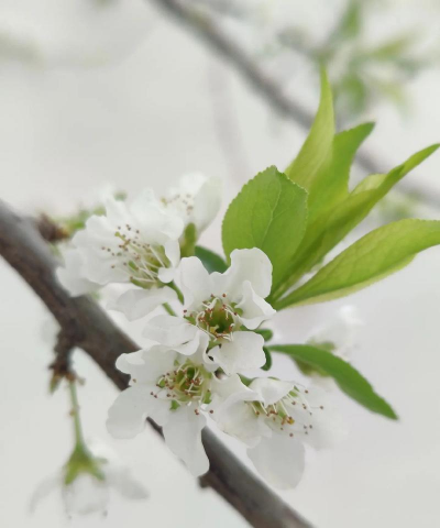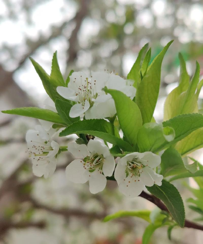 李树的花,白色,小而繁茂,通常3朵并生,花梗明显,花瓣边缘略有波浪卷。花期因地区而异,南方多为3月,北方为4-5月。果实为黄色或红色李子,可食用。