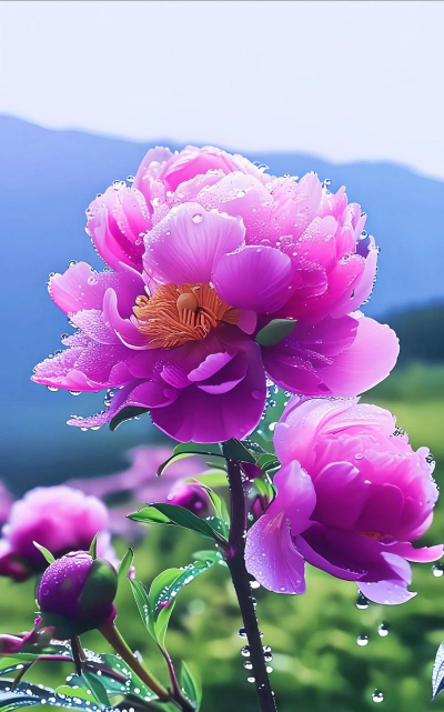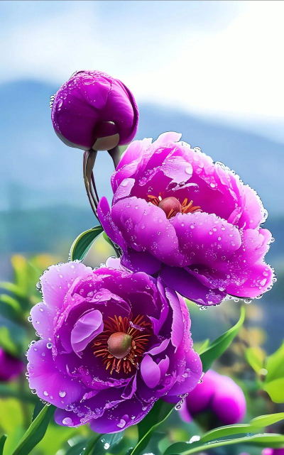 牡丹被誉为“国色天香”,花瓣厚实饱满,单朵花径可达20厘米以上,色彩丰富,常见红色、粉色、黄色等品种,象征富贵与吉祥。