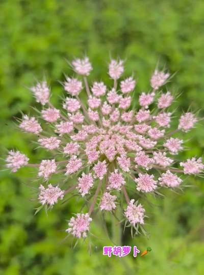野胡萝卜(Daucus carota):园艺种称为“蕾丝花”,花序紧密,有白色或红色变种(如“雾风”)。