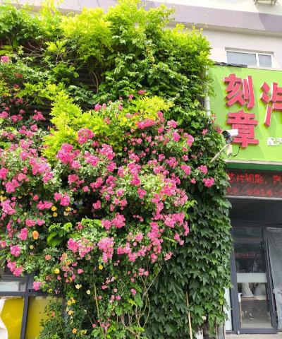 藤本月季(Rosa spp.)攀缘型月季,花型多样且色彩丰富,可三季开花,适应性强,适合制作花墙或拱门。