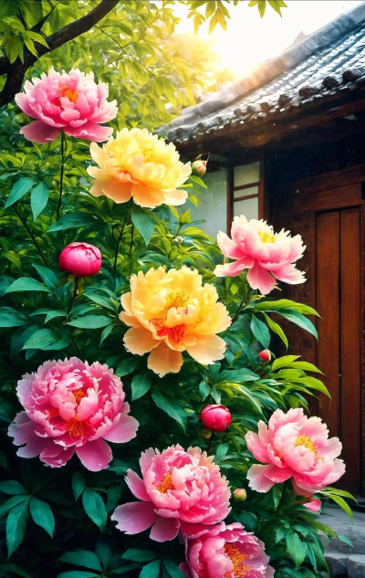 作为“花中之王”,牡丹以雍容华贵著称,唐代刘禹锡赞其“唯有牡丹真国色”。其花色艳丽,富丽堂皇,象征繁荣昌盛,古代多植于皇家园林或富贵人家。盆栽牡丹虽少见,但地栽品种可年年开花,适合庭院点缀。